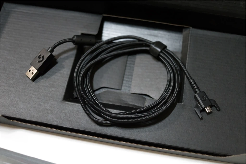 케이블은 G900 등 다른 제품에서 볼 수 있었던 고정력과 내구성이 향상된 커넥터가 사용되었고, USB 커넥터를 쉽게 알아볼 수 있도록 키보드 모양이 각인되어 있습니다.