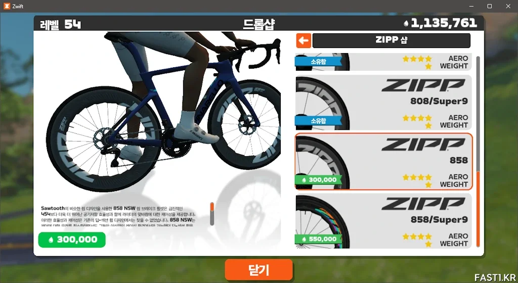 짚 858 휠셋은 레벨 31에 300,000 드랍으로 구매할 수 있습니다. 최종 셋업이 갖춰지기 전까지 사용할 수 있는 가성비 레이스용 휠셋으로 좋습니다.