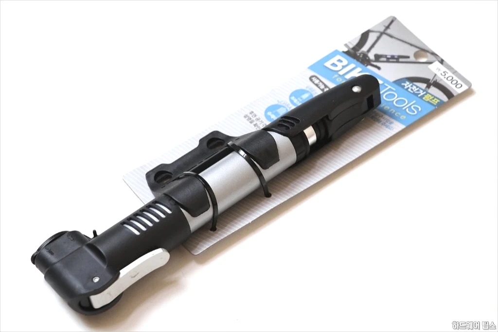 작은 크기의 휴대용 제품으로 본체 재질은 알루미늄이며, 프레스타/슈레더 밸브를 모두 사용할 수 있는 펌프입니다. 판매 가격은 다이소에선 가장 고가에 해당하는 5,000원이네요.