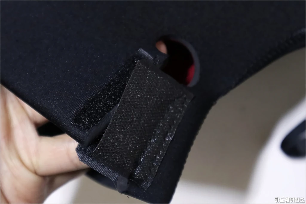 이 제품은 고정 시 전체적으로 벨크로 (찍찍이)를 이용합니다.