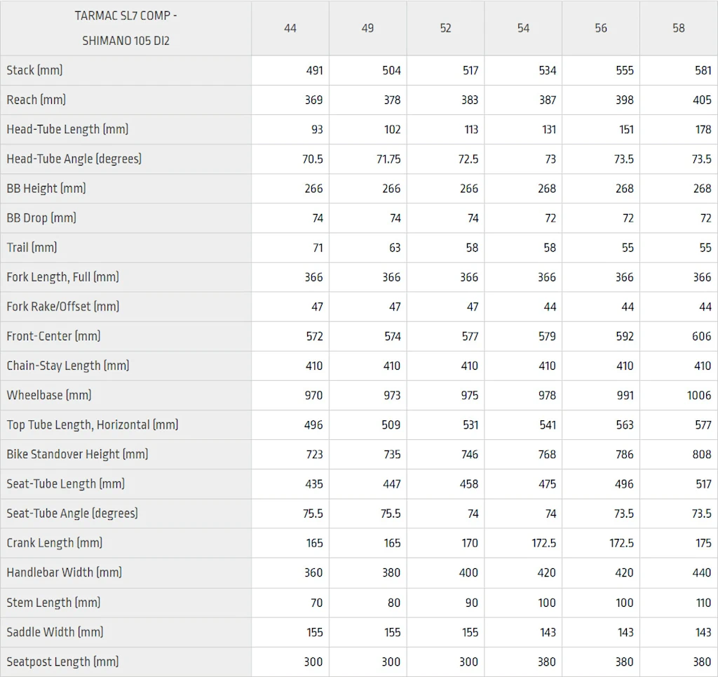 스페셜라이즈드 타막 SL7 콤프: 지오메트리