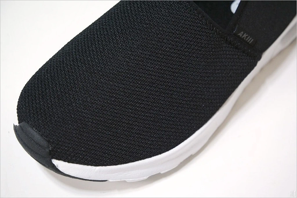 일반적인 슬립온 형태에 앞과 뒤는 러닝화의 디자인, 그리고 약간 높은 편이라고 할 수 있는 4cm의 미드솔을 지니고 있습니다.