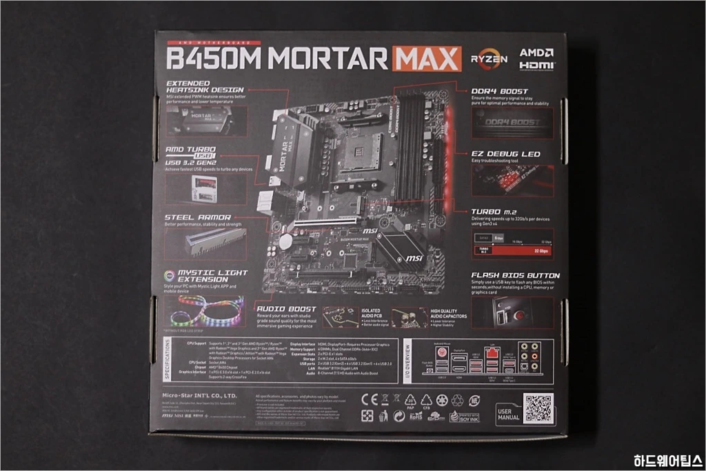 MSI MAG B450M 박격포 맥스의 외형입니다.
