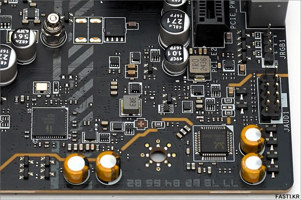 확장 슬롯 하단에는 높은 전력을 소모하는 고성능 그래픽 카드 동작 시 안정성을 높여줄 수 있는 8핀 보조 전원 커넥터가 위치하고 있습니다.