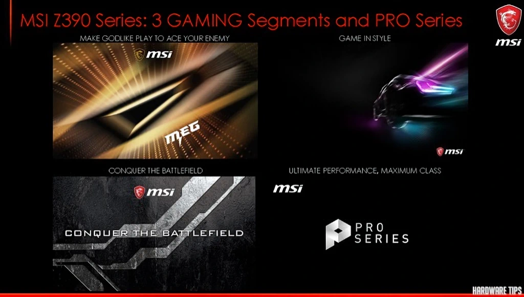 MSI는 이번 9세대 인텔 코어 프로세서용 메인보드를 시작으로 MEG/MPG/MAG로 분류된 3종의 게이밍 라인 그리고 클래식(보급형) 라인인 PRO 시리즈로 메인보드 브랜드를 리뉴얼했는데요. 상세한 라인업 구분은 다음과 같습니다.