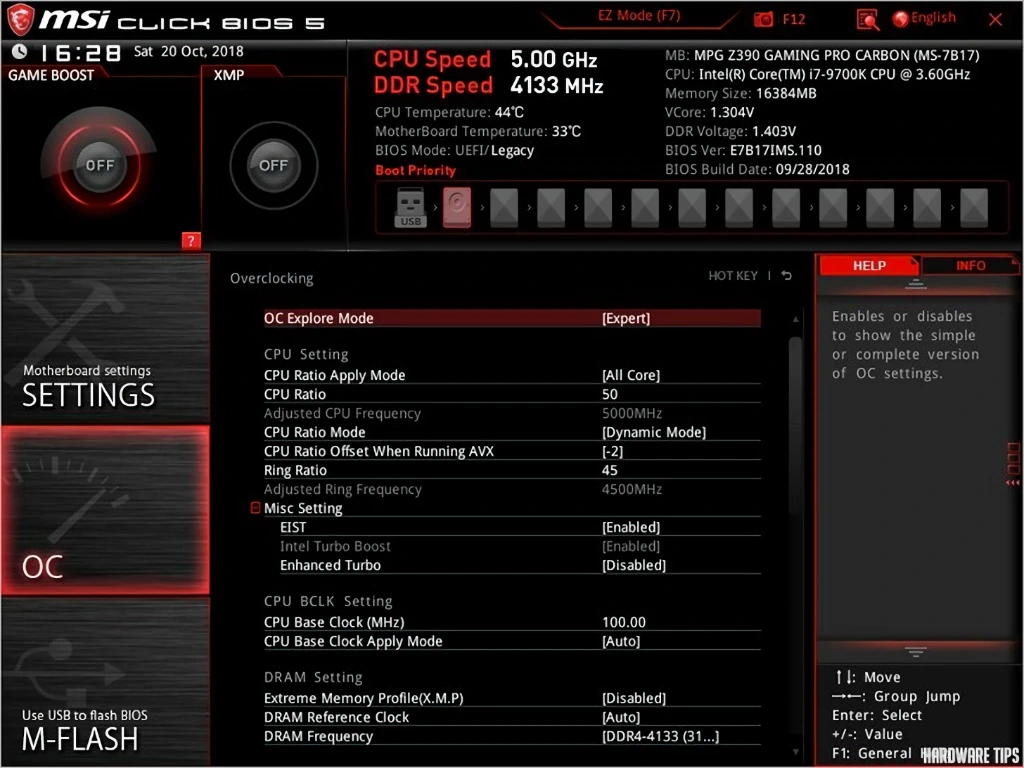 MSI MPG Z390 게이밍 프로 카본: 오버클러킹