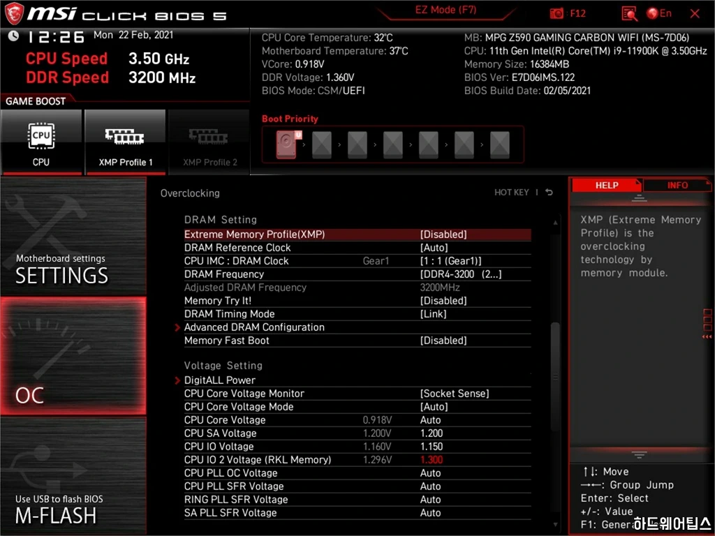 메모리 오버클러킹이 10세대와 다소 차이가 있는데 이 부분은 별도의 오버클러킹 가이드를 통해 설명하니 해당 글을 참고해주시기 바랍니다. (바로가기)